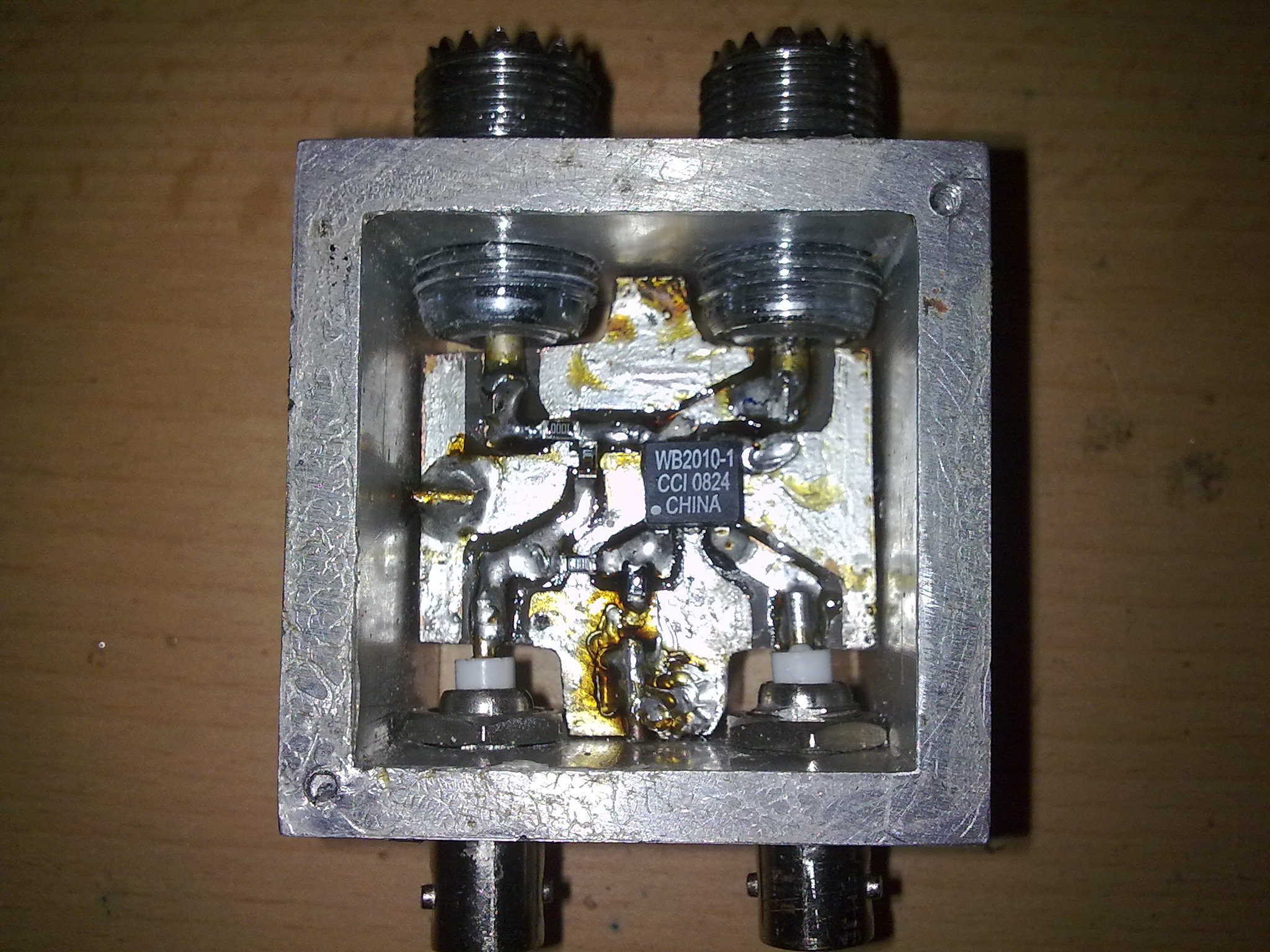 Postanowilem na szybko sprawdzic rozwiazania mostka w oparciu o zawarte w materialach podanych przez Mariana. Wykonalem ( malo starannie linie z RG178, nawlekajac na nia dwuotworowe rdzenie FT43 , prowizorycznie zmontowalem w puszcze z laminatu i.... efekt nawet w przedziale 1...50 MHz okazal sie byc niewiele lepszy niz poprzednie. Doszedlem do wniosku ze :