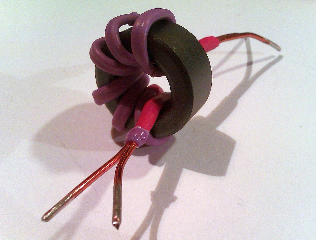 Następnym krokiem było nawiniecie tak przygotowanej linii na rdzeń ferrytowy (nie znam jego parametrów, ale o tym dalej).