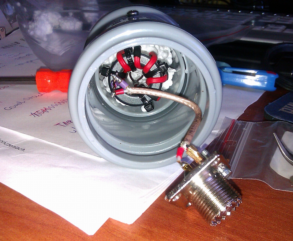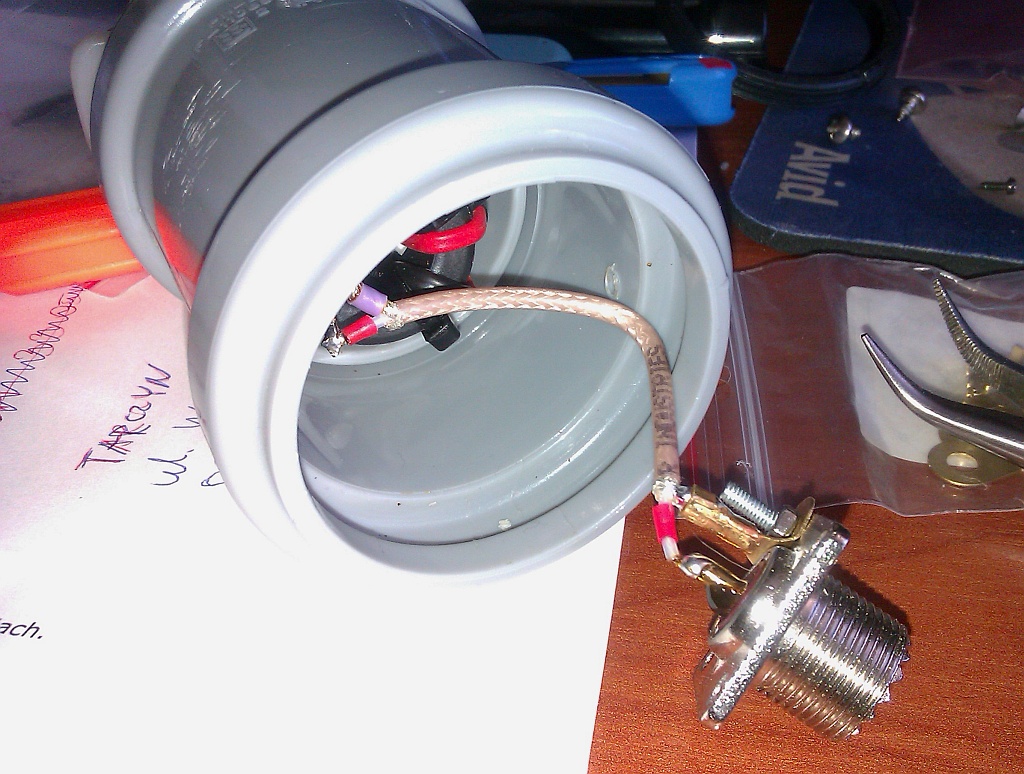 Dolutowałem krótki odcinek kabla RG-316, który umożliwił prawidłowe zamontowanie gniazda antenowego.