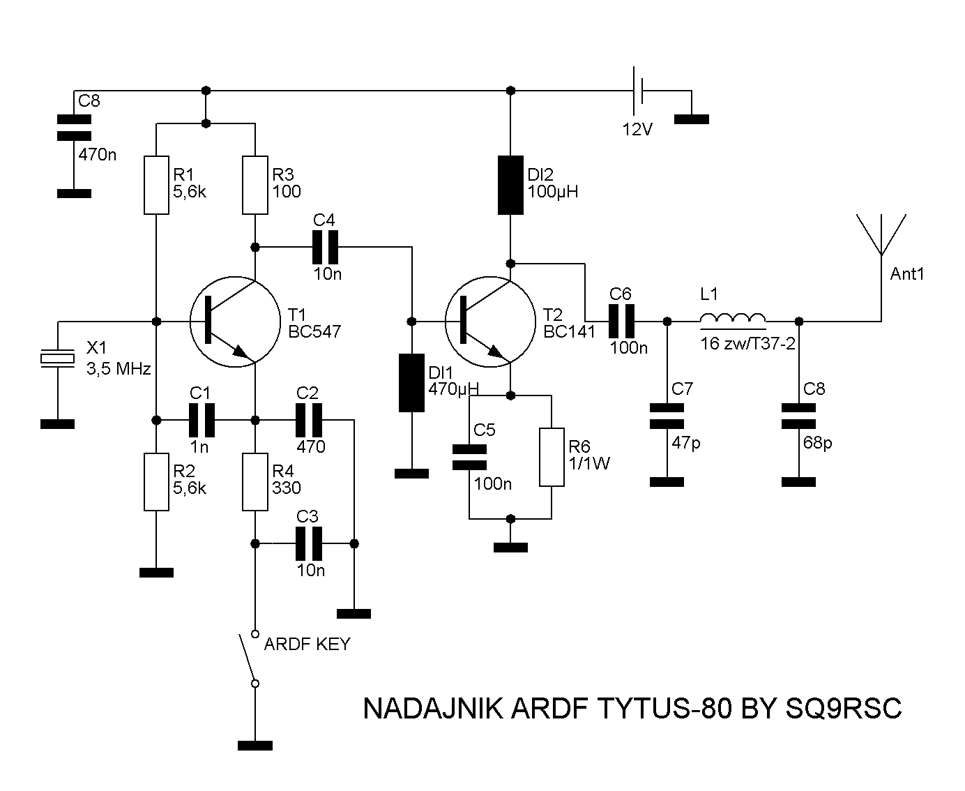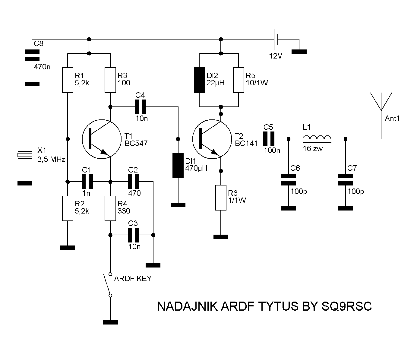 Zbudowałem prosty nadajnik do ARDF. Nazwałem go roboczo Tytus. Działa bardzo fajnie. Na 3m kabla jako antena odszedłem od bazy 300m i jeszcze go odbierałem Sleepy. Może się komuś przyda do mini 'Łowów na lisa'. Pozdrawiam serdecznie