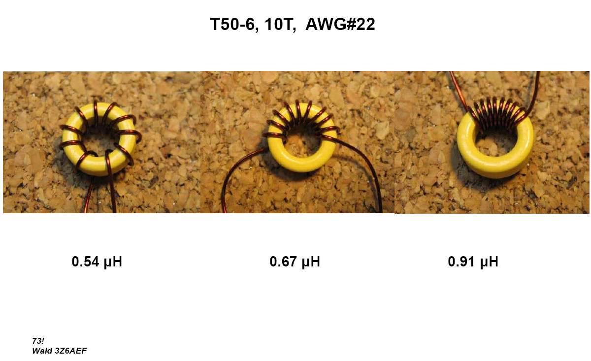 Roy W7EL sprawdził m.in. indukcyjność cewki 10-zwojów na T50-6, która wg miniRingCoreCalculator ma mieć 400 nH.
