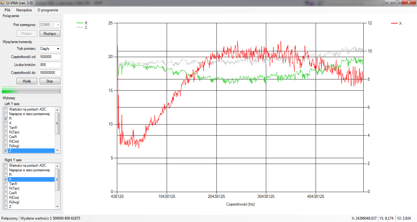 - na podstawie otrzymanych z obliczeń |Z| i kąta fazy (bo ten zestaw jest dokładniejszy do obliczenia Z niż R i X) obliczam zespoloną impedancję Z. Dalej z Z obliczam zespolony współczynnik odbicia Gamma.