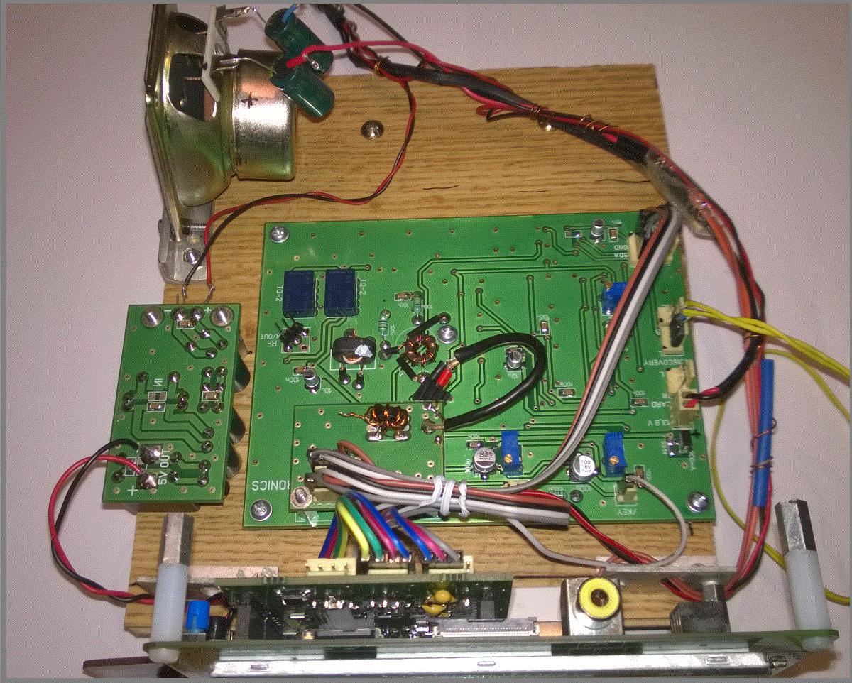 Przewód mcz odwinąłem w/g zalecenia,na razie nie skracam.Jest teraz luźno położony poza panelem podłogowym z którego wykonałem podstawę do Husarka DSP.Docelowo radio będzie zamknięte w jakąś obudowę,to co teraz jest tylko na czas prób.Na panelu czy na stole,chyba bez różnicy.Jeszcze są przewody głośnika do DISCO.To też mcz,choć nie ekranowane.Na wszelki wypadek lecą teraz po drugiej stronie płyty radiowej zamiast przy przetwornicy i RF IN/OUT.