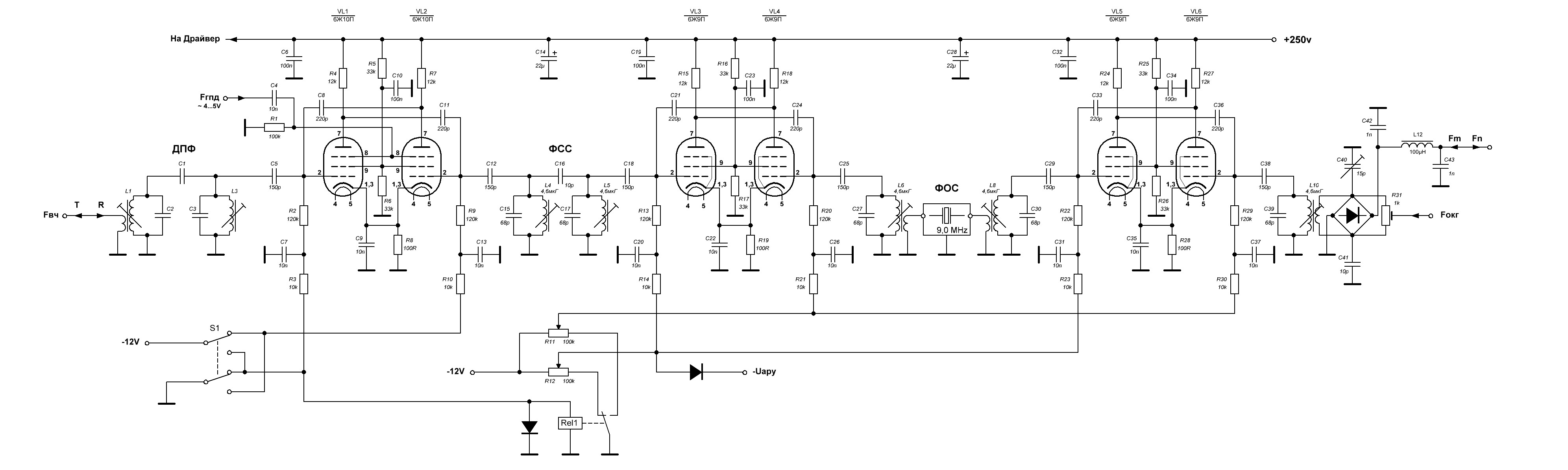 A tu poniżej jprzykłady lampowych torów rewersyjnych z filtrami kwarcowym, których włączenie jest jak widać poniżej bardziej skomplikowane niż filtrów elektromechanicznych: