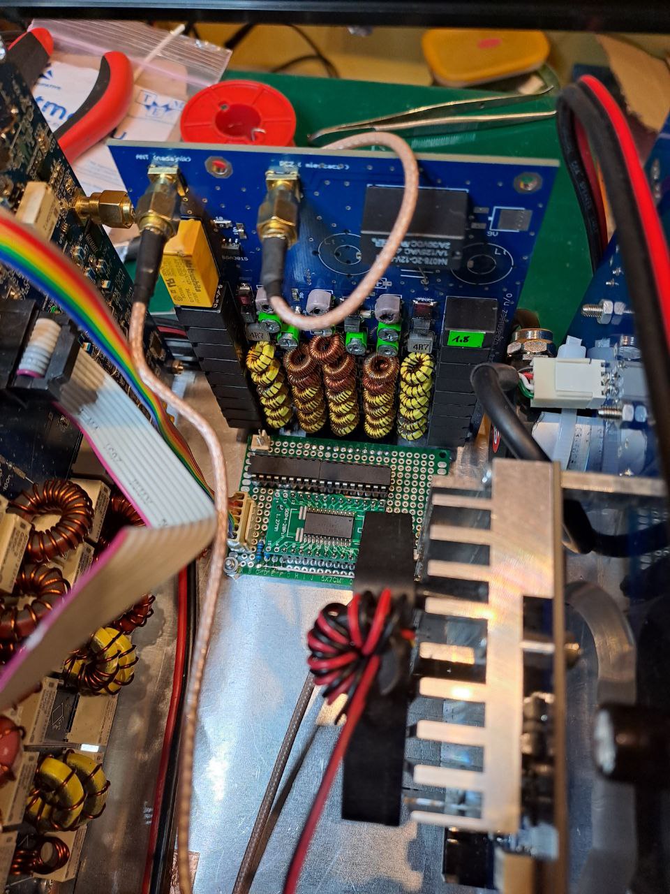 I na tym można uznać budowę Wilka zakończoną , KF łącznie z 50Mhz 100 W , dobudowane filtry pasmowe które w dużej mierze poprawiły jakość odbioru ,sterowanie wzmacniaczem i z komputerem bez problemowo działa , obudowa zmniejszona , pierwowzór był za wysoki. Jeszcze zostało dopracować sterowanie przełącznikiem antenowym z Wilka
