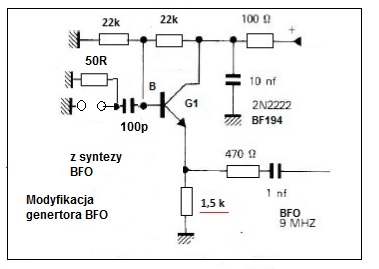 Schemat do zmian w BFO w załączeniu. Nie potrzeba robić żadnych modyfikacji w układzie ścieżek na płytce. Jeśli przewidujemy tylko BFO z Si5351 to wystarczy wlutować tylko jeden z dotychczasowych BFO i zasilić go na stałe (zmiana BFO: USB, LSB, CW jest przełączana w syntezie).