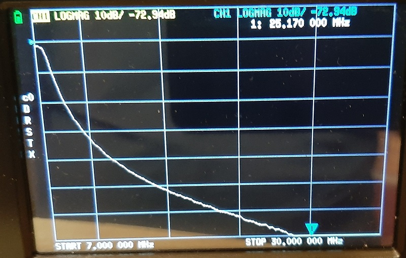 Sprawdzenie produktów niepożądanych odbiornika w paśmie 28Mhz (BFO z Si5351). Największe produkty niepożądane z syntezy Si5351 (spurs) wychodzą właśnie na tym pasmie... jest bardzo dobrze...