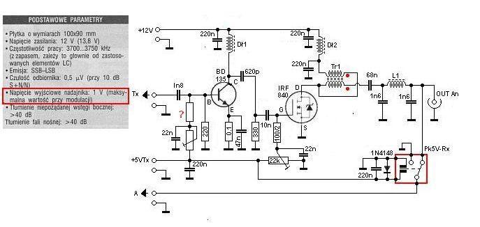 Z kolei w danych technicnych autor mówi o sygnale w.cz. z płytki TRx-a na poziomie 1V.