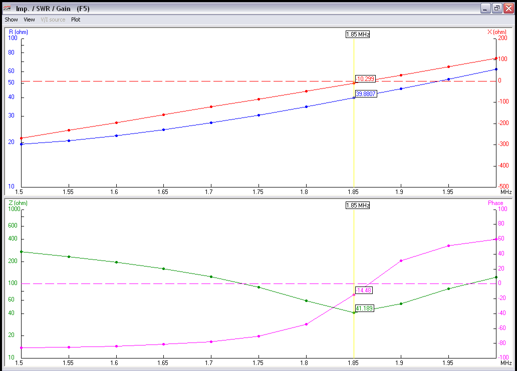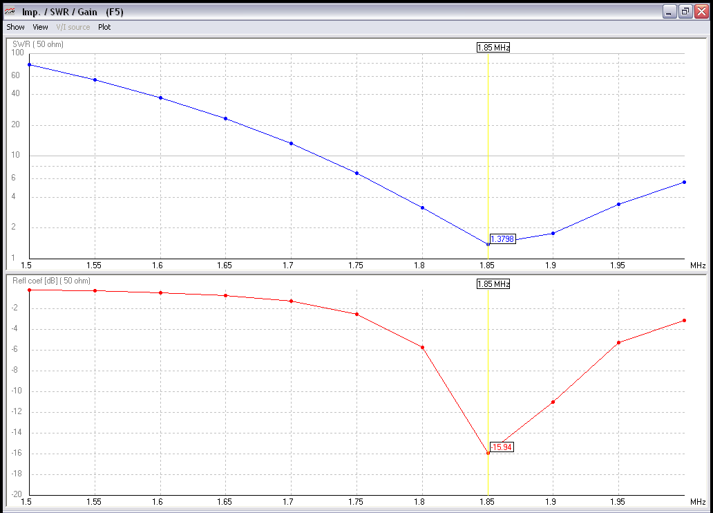 Na symulacji zasilania na 2-gim segmencie SWR jest juz od 5 w góre ;(((.