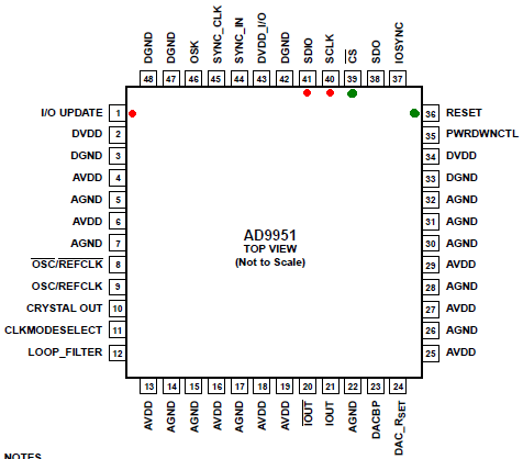 Będziemy wysyłać do układu AD9951 instrukcje wykorzystując wyprowadzenia, po stronie DDS: