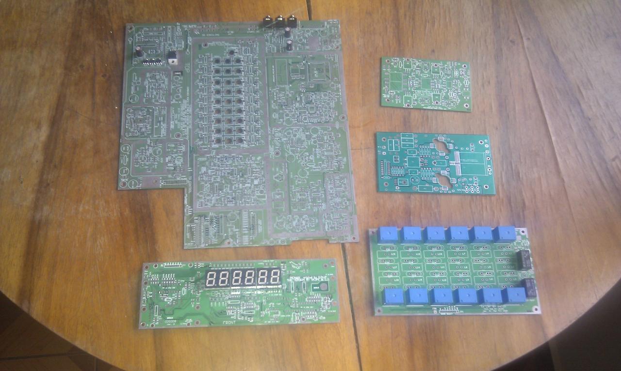 W zestawie się główną płyta, płyta panelu przedniego, wzmacniacza 20W i filtrów LPF. Ze swojej strony dołożę wykonaną kiedyś płytką wzmacniacz 150W.