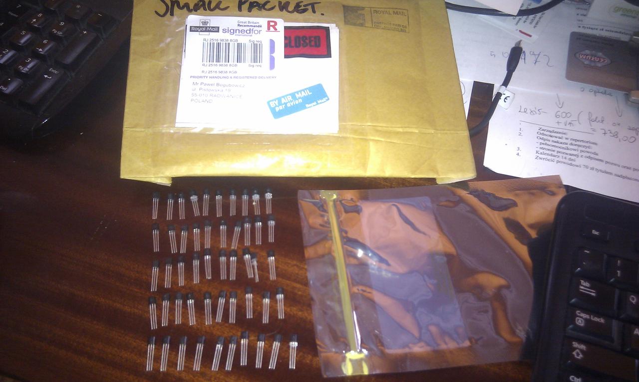 Otrzymałem również z Korei rezonator kwarcowy dla procesora DSP i nietypowe stabilizatory z Wielkiej Brytami.
