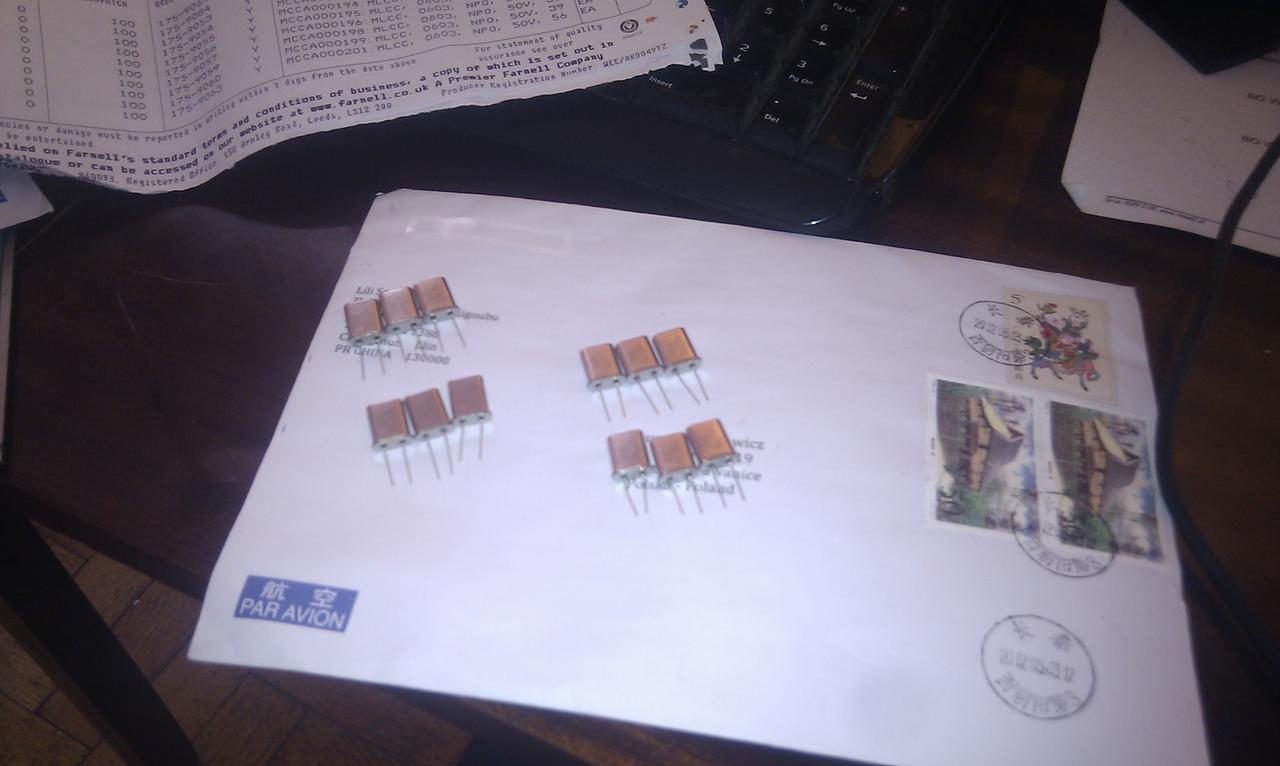 Przed momentem dotarły do mnie od Kolegi BG2RAQ kwarce 10.710 i 10.715 oraz z Farnell-a kondensatory NP0 do filtrów BFP.