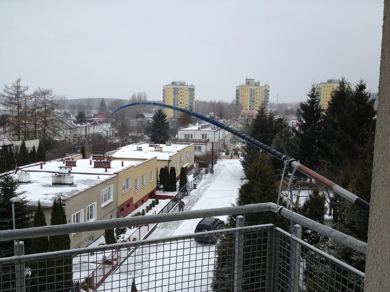 wiem, że trochę odgrzewam kotleta, ale od 3 dni też używam anteny "wędkowej". Jak do tej pory zrobiłem kilka łączności na 80, 40, 30 i 20 metrach. Anten zamontowana na balkonie, przeciwwagą jest balustrada balkonowa (długości około 5 metrów), na wędce nawinięte jest około 25 metrów linki 1,5 mm2 (ale chyba będę musiał zmienić na 0,5 tak jak u Jarka bo trochę za ciężkie to jest u mnie). Antena połączona jest (i strojona) do tumera MFJ 993 poprzez około metrowy odcinek koncentryka (RG58 - bo przy grubszym okno mi się nie zamyka). Nie sprawdzałem jeszcze gdzie antena rezonuje bez skrzynki. Jak na razie najdalsze łączności to Anglia. Raporty jakie dostaję to od 55 do 59 - nie pracuję pełną mocą - około 50 do 70 Watów. To tyle z moich testów jak do tej pory.