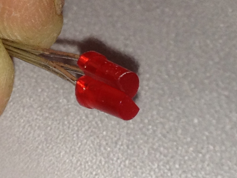 Diody jakich użyłem to dwie L-424IDT (czerwone). Fotorezystor ten sam co w Husarku. Delikatnie, na drobnym papierze ściernym starłem diody wzdłuż, prawie do połowy, tak żeby nie uszkodzić struktury. Skleiłem obie kropelką, po sklejeniu starłem diody " w pionie" do długości ok 2mm (były dość długie).