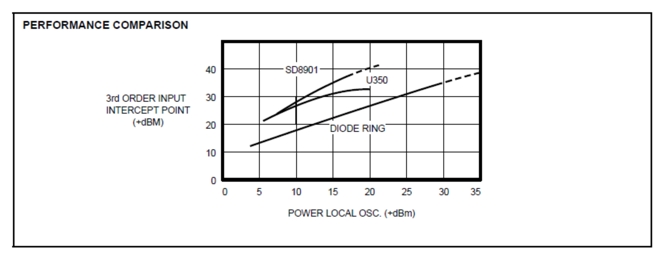 Dziękuję za odpowiedź. Czy z tego wynika, że by wykorzystać w pełni możliwości tego kwartetu należałoby dodać diplekser? Pytanie moje związane jest z tym, że posiadam pewną ilość układu SD8901HD (wersja z metalową obudową) ale również mam mieszacze kołowe o stosunkowo dobrych na KF parametrach. Drąży mnie niepewność jaki z mieszaczy zastosować..? Na stronie producenta SD8901 znalazłem porównanie charakterystyk między SD8901, U350 i diodowym mieszaczem kołowym. Na moją słabą znajomość elektroniki, z wykresu chyba wynika, że w zasadzie zysk w przypadku mieszacza opartego na SD8901 dotyczyłby przede wszystkim niższego poziomu mocy z LO. Nie wiem czy jest to poprawna analiza? Na wszelki wypadek załączam link do strony producenta SD8901 oraz wspomniany wyżej wykres.