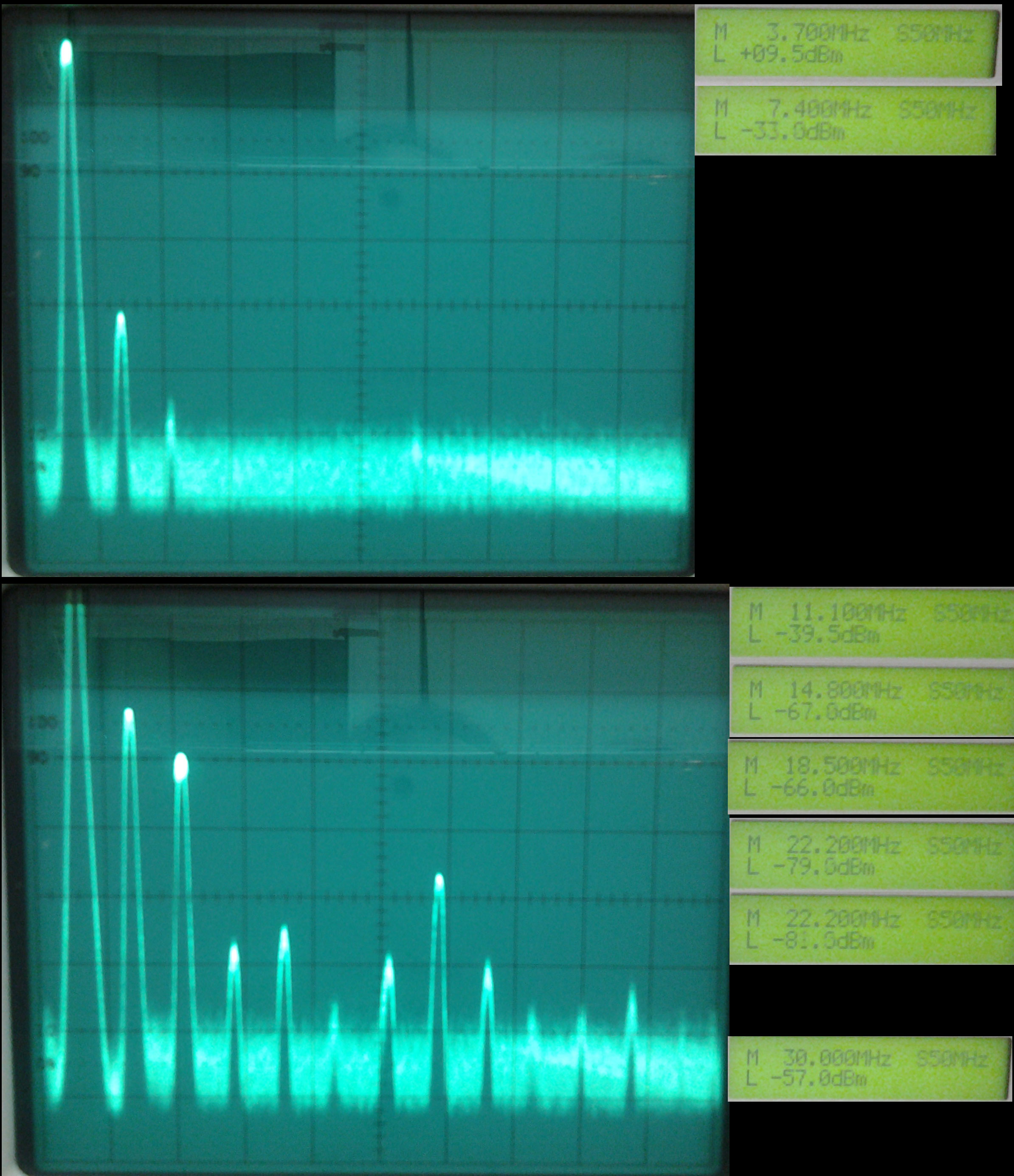 Poziom sygnalu i harmoniczne VFO: 3.7MHz