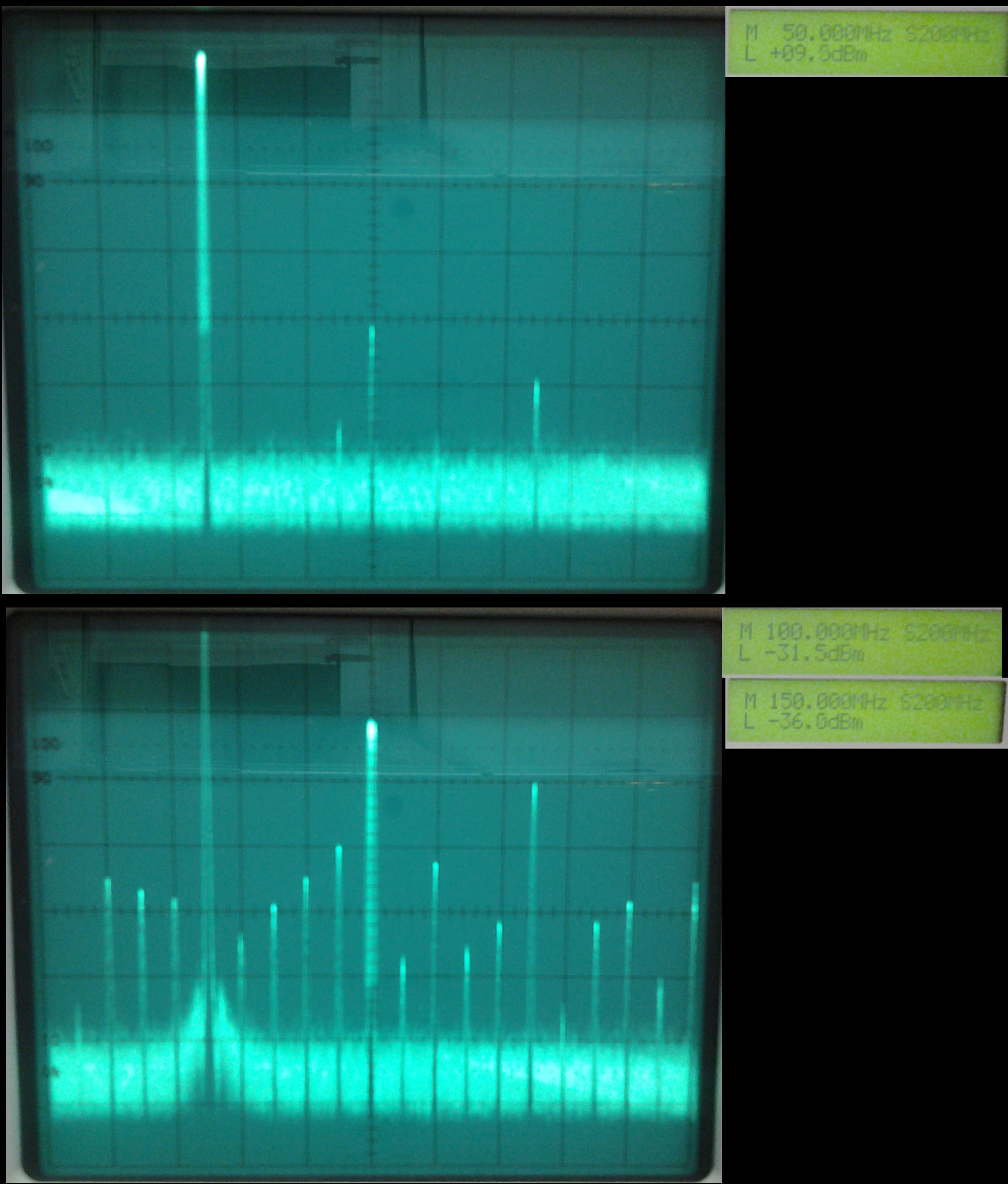 Poziom sygnalu i harmoniczne VFO: 50MHz