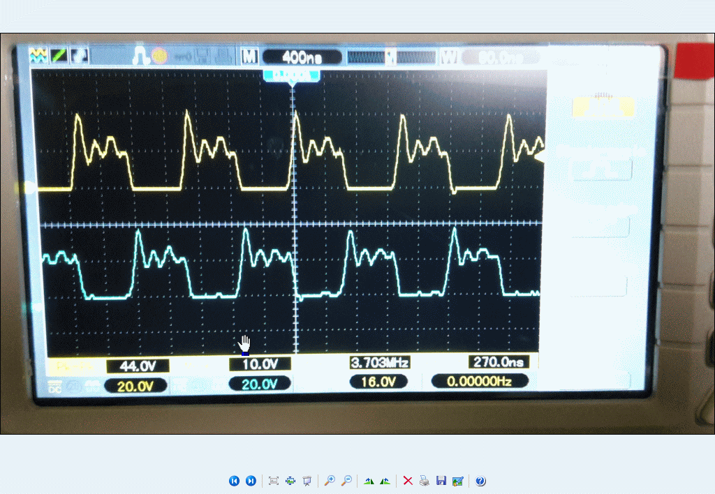 Żółty przebieg to jeden tranzystor,a niebieski to drugi.