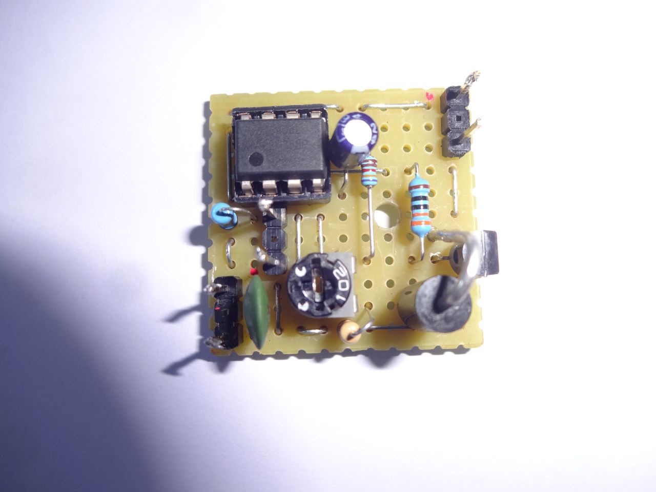 Złożyłem nowy, elektroniczny termostat na układzie LM358. Działa dokładnie tak samo jak zmodyfikowany poprzedni i jest stabilny. Ma mniejszą bezwładność termiczną, szybciej reaguje na zmiany temperatury. Zdemontowany czujnik miał oznaczenie KSD301 250V/5A 45 st.C. Ja ustawiłem temperaturę zadziałania nowego termostatu na 55 st.C. Potencjometrem nastawnym można zmieniać ją w zakresie ok. 45-60 st.C. Do zamocowania układu wykorzystałem istniejące otwory po zdemontowanym termostacie. Termistor jest przyciśnięty do bloku radiatorów odpowiednio wygiętą blaszką miedzianą (+ pasta termoprzewodząca) przykręconą do jednego z otworów. Do drugiego na metalowej tulei dystansowej przykręcona została płytka z elektroniką (potrzebna dłuższa śrubka). Podczas montażu elementów rozmieszczonych na płytce, trzeba wysoko wlutować kondensator elektrolityczny i rezystory znajdujące się w pobliżu otworu na śrubkę, żeby się pod nimi zmieściła. Ja o tym nie pomyślałem i musiałem kombinować podczas przykręcania płytki. Rezystor (SMD) sprzężenia zwrotnego (zapewnia pewną histerezę układu) jest wlutowany od strony padów lutowniczych. Dioda zenera zapewniająca napięcie dla wentylatora na 1 biegu została zdemontowana z niesprawnego termostatu bimetalicznego. Do wyregulowania temperatury zadziałania układu użyłem uniwersalnego miernika z pomiarem temperatury oraz odpowiedniego rezystora podłączonego do zacisków zasilacza, żeby nagrzać radiator. Termopara miernika w czasie regulacji została wsunięta pod miedzianą blaszkę mocującą termistor (+ pasta termo, termopara wreszcie się przydała!).