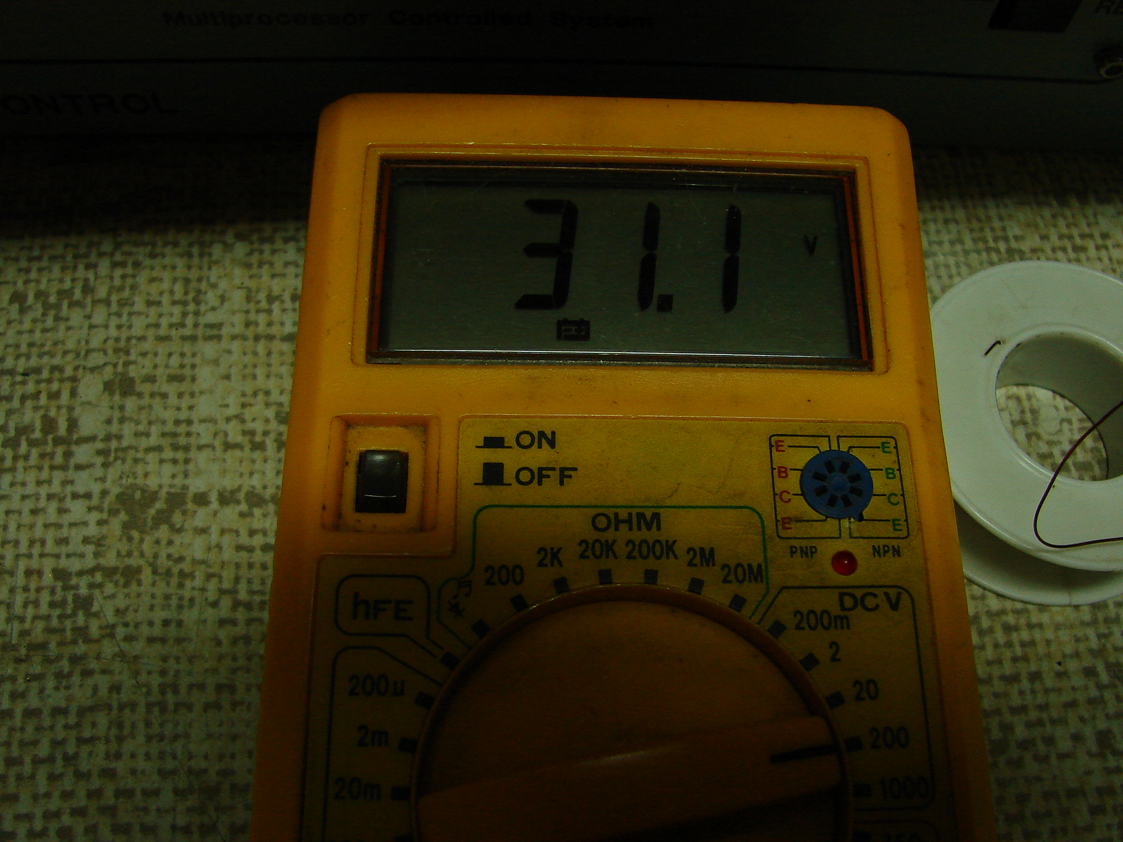 Dla porównania zamieszczam widok miernika z odczytem tego samego napięcia mierzonego sztuczną anteną wyposażoną w detektor diodowy. Mój detektor jest zbudowany z dwóch diód 1N4148 połączonych szeregowo, aby można było mierzyć znacznie większe moce, w związku z tym wynik pomiaru jest zafałszowany w dół. Dla pomiaru małych mocy można stosować tylko jedną diodę 1N4148 lub diodę schotk'y np. BAT41, a dla QRPP <1W diodę germanową np. AAP152. Jeśli mierzymy moc sondą diodową to możemy być pewni, że na pewno jest tyle mocy ile obliczyliśmy, a rzeczywista moc jest nieco większa. Jest to dla nas raczej optymistyczne.