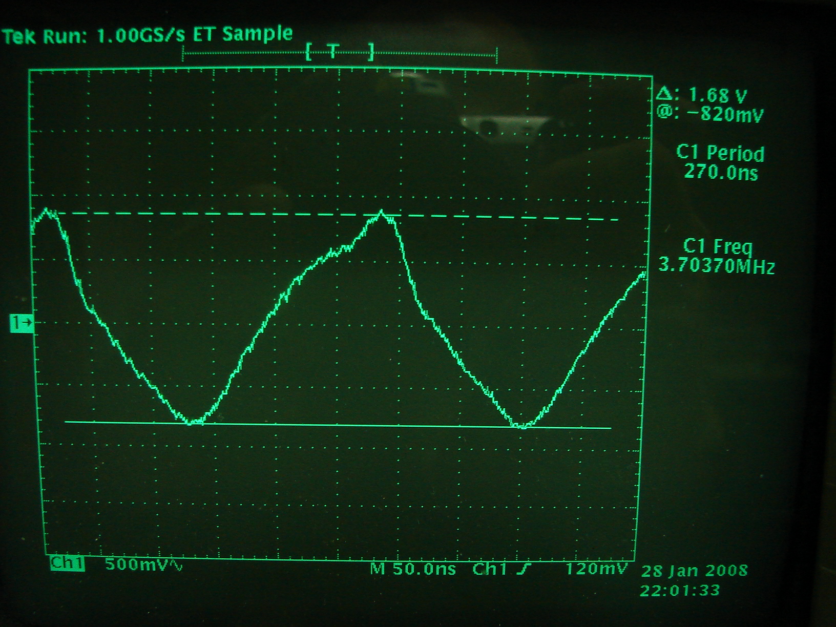 Pierwszy pomiar to pomiar mocy przez pomiar napięcia na obciążeniu 50 omów.