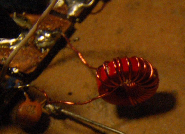 Zdj1, to cewka powietrzna, ok 1,5uH. Najpierw nawinąłem ją jako ok 11uH i odwijałem po jednym zwoju, aż na końcu zostało to, co na samej górze.