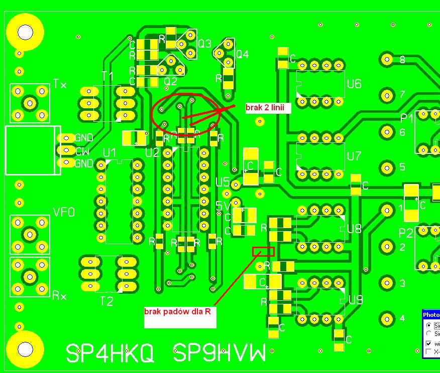 - na druku nie ma pola pod kondensator 470pF (pin 1-2 U3a), należy przylutować go na "kanapkę" z rezystorem 100k;