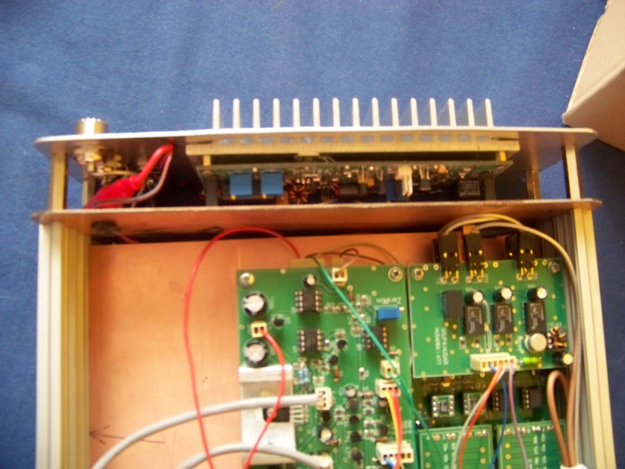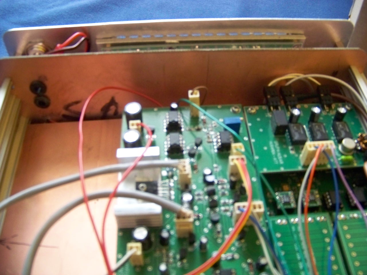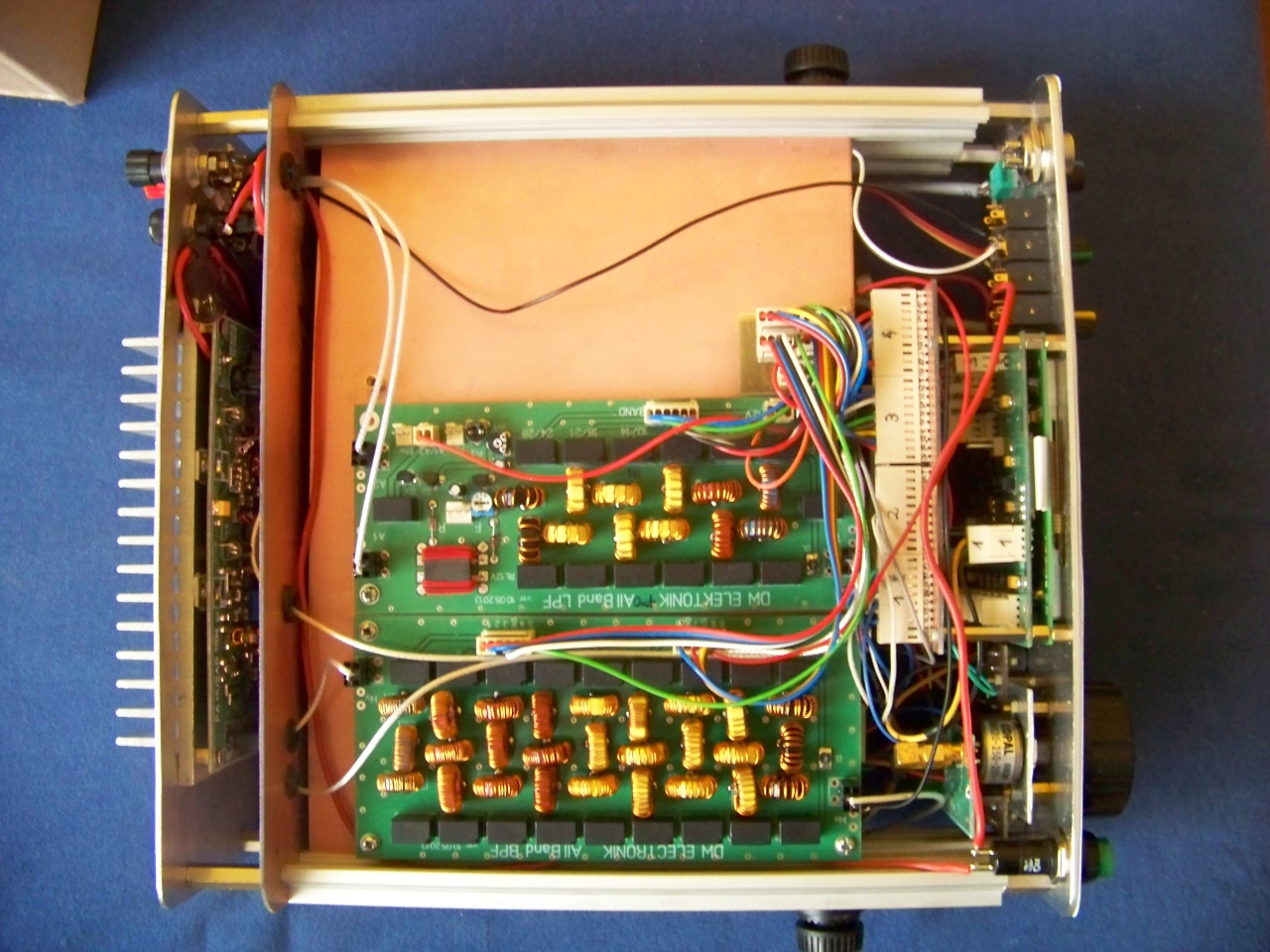 Wygląda na to, że nie ma więcej błędów na płytkach z DW-Radio. Podłączone i zestrojone BPF i LPF. W konfiguracji odbiorczej wszystko chodzi. Powoli biorę się za część nadawczą. Czekam na ładne czarne pokrętła na potencjometry. W środku zostaje sporo miejsca do zagospodarowania. W przyszłości trzeba będzie je zagospodarować - ATU lub jakiś mocniejszy stopień wyjściowy. Obwody LPF wykonane wg opracowania Janusza SP5BMP- z tego wynika inny sposób komutacji kluczami diodowymi, niż opis pasm na płytce LPF : 1,8 - 3,5 - (7+10) - (14+18) - (21+24) - 28 MHz.