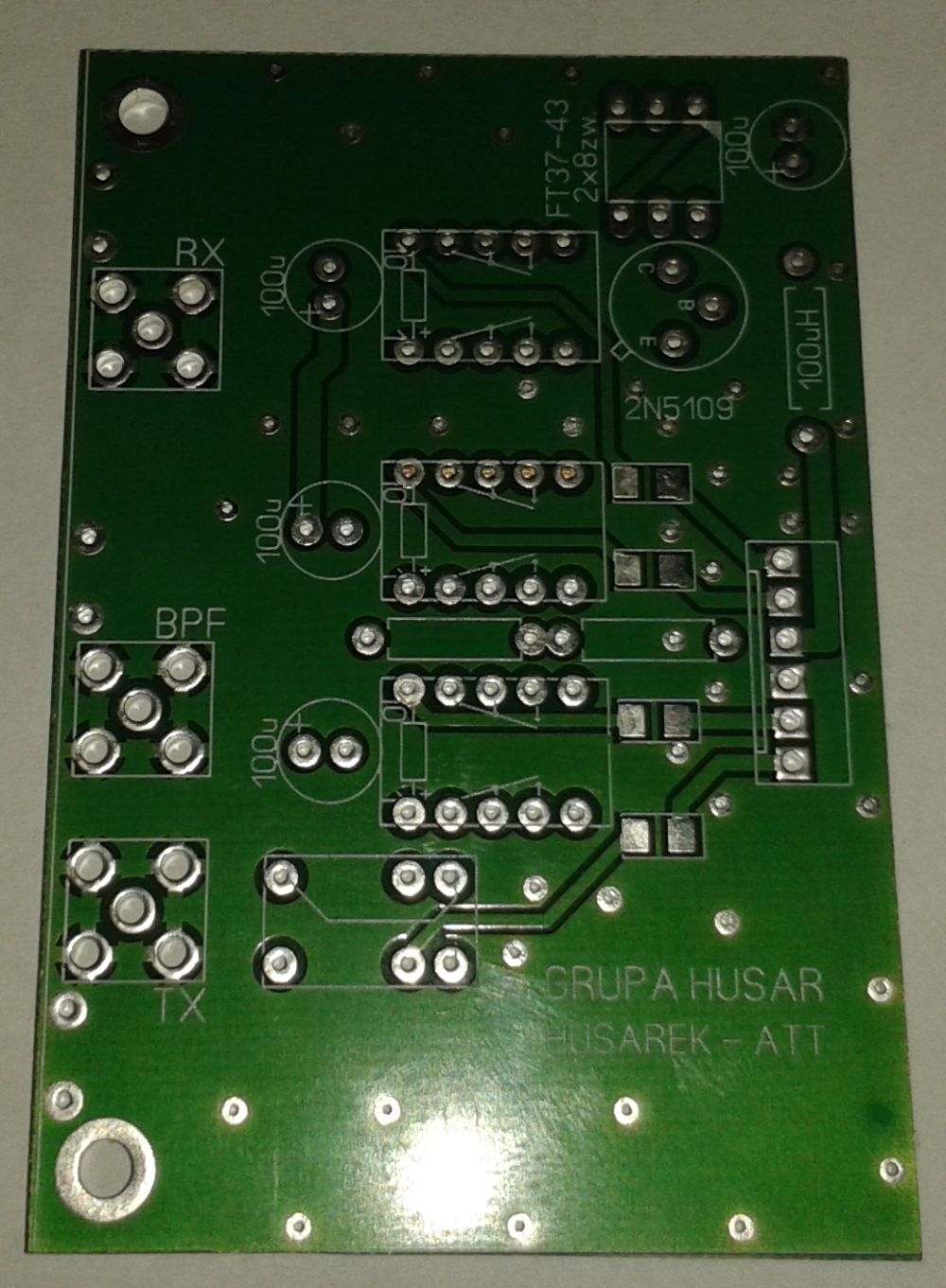 Koledzy, płytka tzw. "spinki" oraz płytki filtrów LPF i BPF w wer. DW powstały później niż pierwsza wersja Husarka opisana w podręczniku budowy, dlatego w opisie nie znajdziemy schematów do tych płytek. Płytka spinki była częściowa opisana w postaci schematu wzmacniacza w.cz. oraz dokładnych zdjęć na forum. Na druku również są opisy elementów ułatwiające montaż.