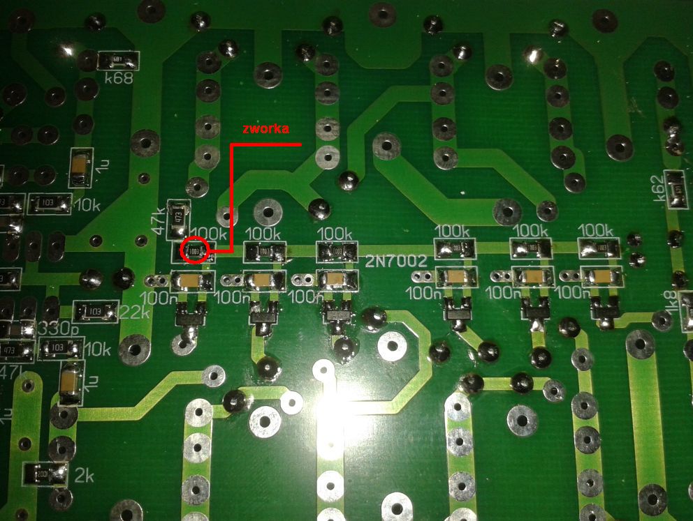 Jeżeli na płytce jest źle to trzeba zastosować zworkę(rezystor 0 ohm) tak jak pokazałem na zdjęciu.