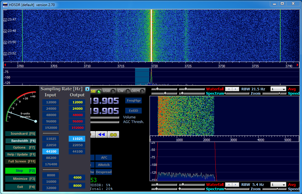 Po uruchomieniu programu i wstępnym skonfigurowaniu (F5-mikrofon i głośnik, F6-częstotliwość próbkowania karty dźwiękowej), podłączamy wyjście pcb do gniazda mikrofonowego w PC i już mamy drugi odbiornik (nie należy zapominać o przyciśnięciu klawisza