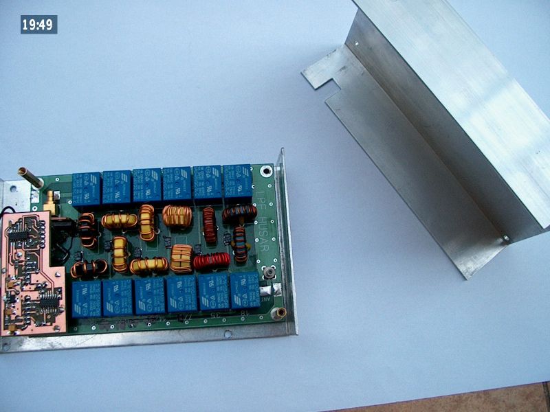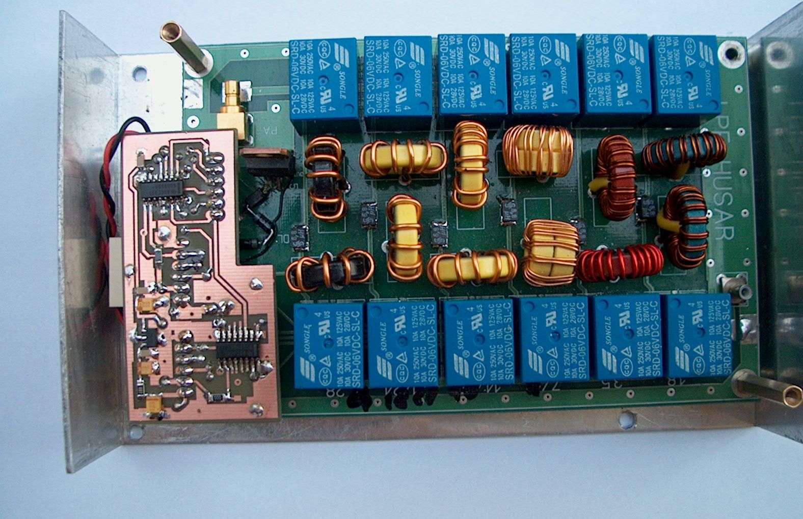 Przykładowy moduł LPF z dobudowaną płytką na układach TPIC6C595 do bezpośredniego sterowania przekaźnikami ( TPIC6C595 ma układ wykonawczy na DMOSie i wydajność prądową 100mA- max 250mA, U do33V). Moduł o wymiarach 165x100 x38 można zamocować na PA.