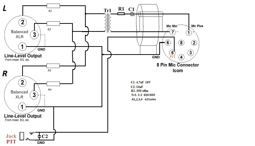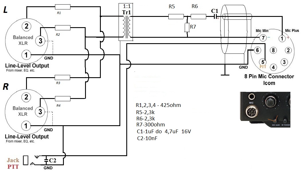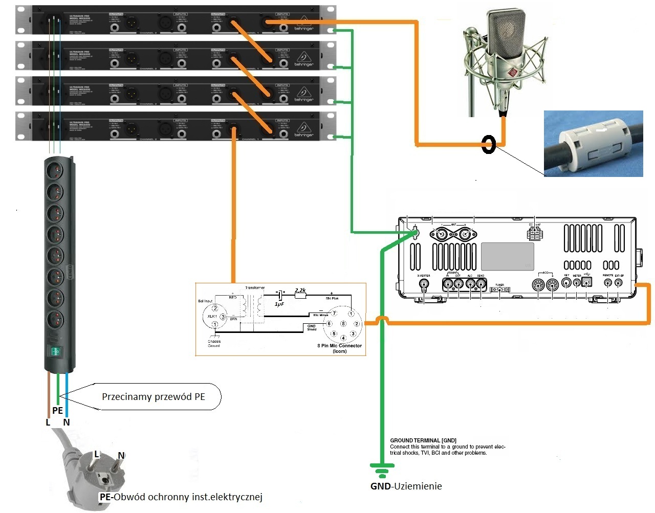 Proszę o umieszczanie tylko konkretnych przykładów podłączenia urządzeń peryferyjnych audio (mik) do TRX , nie sposobów zasilania 230V.