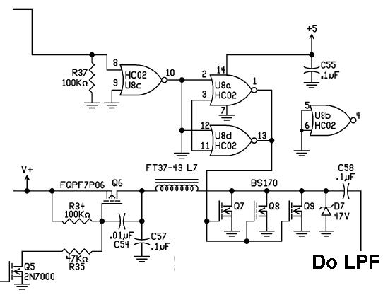 No właśnie, bo ta końcówka jest taka śmieszna. Moc "bierze na klatę" tranzystor FQPF7P06 a BS170'y kluczują z częstotliwością sygnału uformowanego na wyjściu 74HC02 (f nośna) . Rzecz w tym, że kiedy poddawałem ostrym testom tę końcówkę, to FQPF7P06 był kompletnie zimny natomiast BS'y stawały się lekko ciepławe. Stąd potwierdza się zalecenie autora projektu, że w przypadku zwiększenia mocy wyjściowej konieczne są radiatory dla BS170. Również mam informację, że koledzy, którym udało się powalić tę końcówkę (np.wskutek przekroczenia napięcia zasilania lub niedopasowania) musieli nabyć BS170. Wyciągam więc wniosek, że one właśnie mogą być słabym ogniwem w przypadku problemów z dopasowaniem.