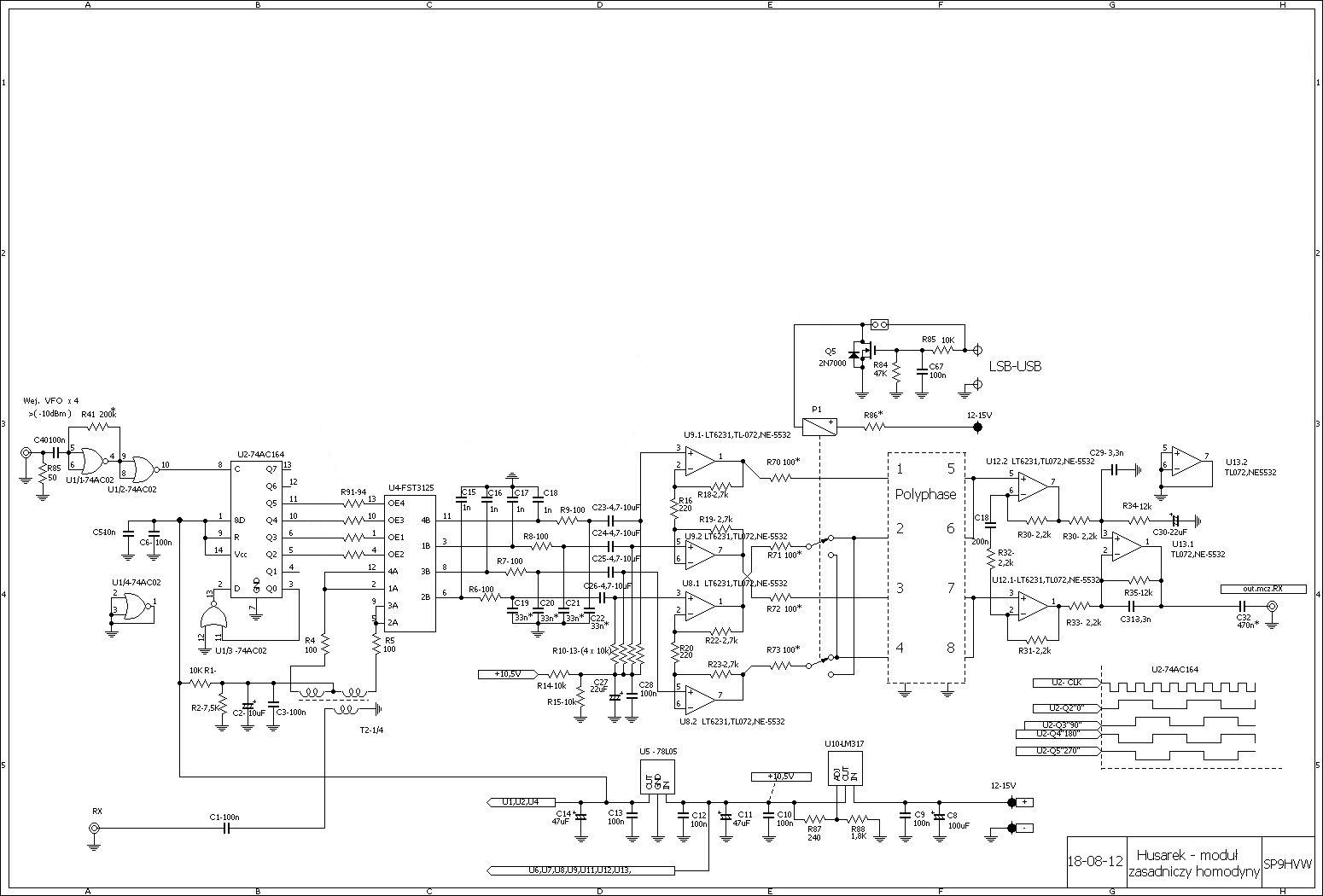 Koszt wykonania odbiornika na bazie HUSARKA oraz nakłady pracy będą zdecydowanie większe ale warto je ponieść. Mino dość rozbudowanej konstrukcji stopień trudności wykonania tego odbiornika nie jest wysoki. Przy umiejętności czytania schematów, lutowania oraz wykonywania podstawowych pomiarów miernikiem uniwersalnym i zastosowaniu sprawnych elementów każdy powinien bez problemu go uruchomić. Odpada problem wykonania toru pośredniej częstotliwości, filtrów kwarcowych oraz ustawienia BFO. Samo dobranie kondensatorów do polifazera czy rezystorów aby uzyskać poprawną symetrię torów wymaga trochę pracy ale jest bardzo proste do wykonania.