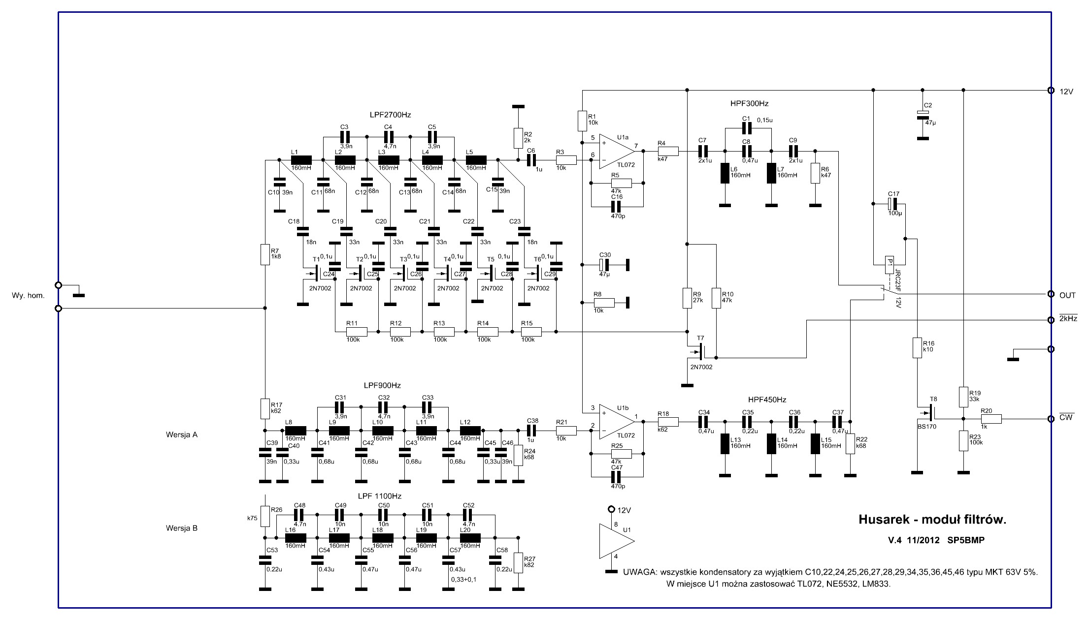 Jako filtry wejściowe BFP myślałem aby wykorzystać projekt użyty do TRX "PILIGRIM" przez kolegę SP2JJH, oczywiście pozbawioną wzmacniacza TX.