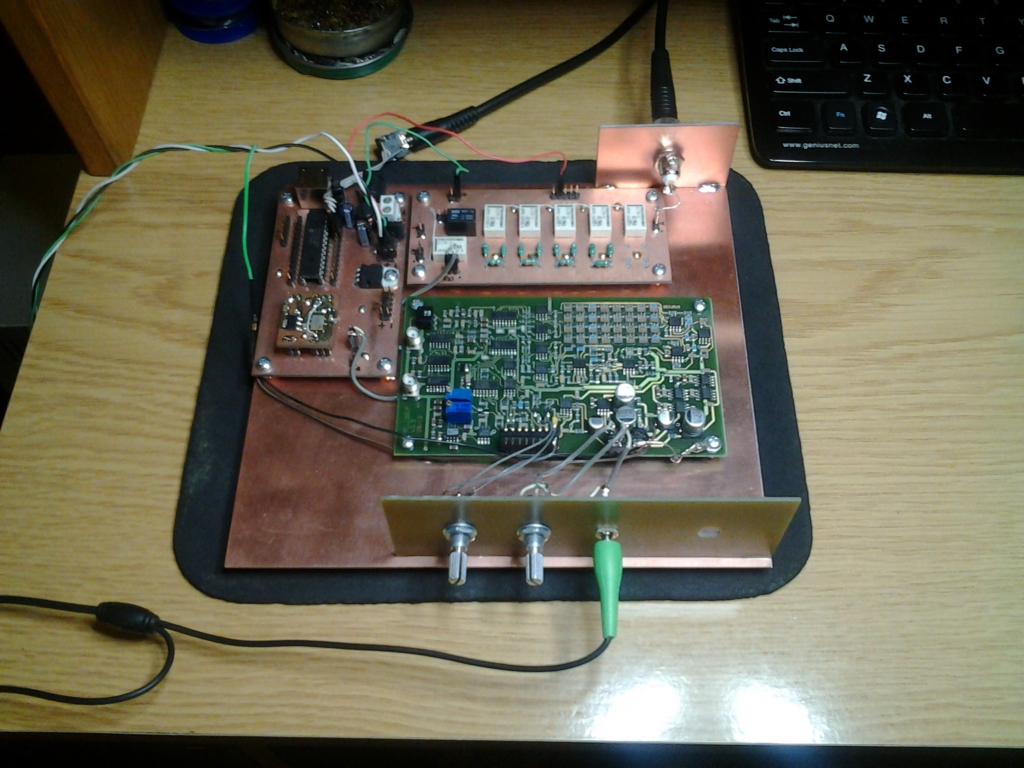 Jestem po próbach odbioru z tej płytki, którą umieściłem na próbnym chasis wraz z filtrami wejściowymi oraz syntezerem Si570 + sterownik sprzężony z komputerem (sterownik z mojego SDR-a sterowany z programu SDR)
