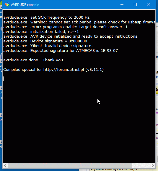 E, L:FF), i użyj niestandardowego bootloadera Optiboot dla zegara 20MHz, a następnie prześlij przez interfejs szeregowy (z liniami RX, TX i DTR podłączonymi odpowiednio do pinów 1, 2, 3)" może to pomoże chociaż w kompilacji i zaprogramowaniu wg starej metody . Tak pisał też Paweł. Optiboot jest krótszy a zatem będzie więcej miejsca dla kodu.