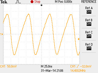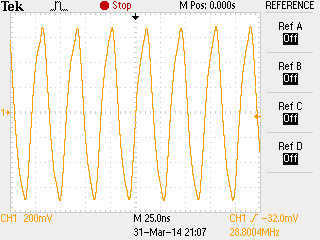No i teraz do wynikow - zamiast ladnego sinusa jest to co widac Sad Stad tez pytanie czy ktos moze potwierdzic lub zaprzeczyc, ze zniesztalcenia wynikaja z niedopasowania sondy czy tez po prostu jakosc sygnalu z tego TCXO jest taka marna?