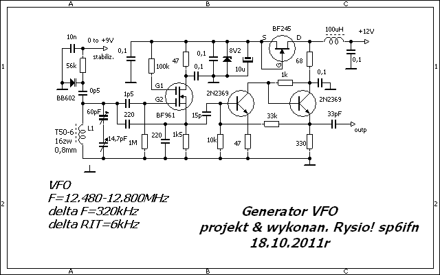 Oglądałem ten schemat. To jest schemat podobny do opracowanego przez Ryśia. Mój się różni koncepcyjnie i jest tylko podobny. Jeszcze mam wzmacniacz separator, zamieszczę niedługo. Daje na wyjściu aż 2V w.cz.