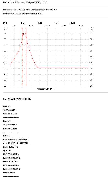 Tłumienie w paśmie zaporowym przekracza 35 dB co jest wartością całkiem niezłą