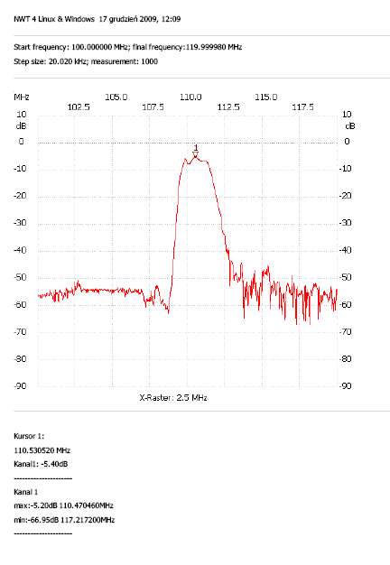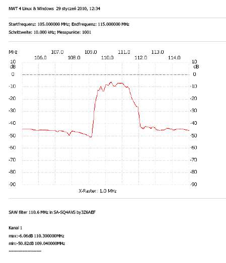 Wracając do tematu wątku Wink - pomierzyłem filtr SAW 110.6 MHz w układzie,