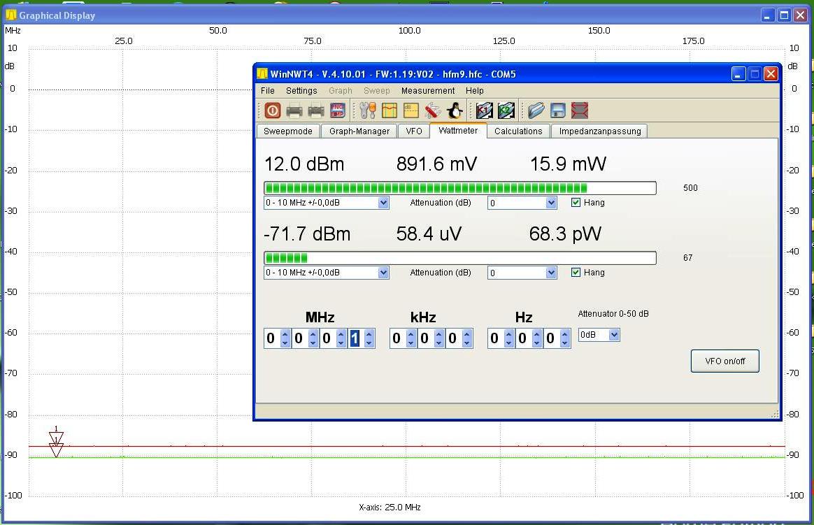 soft pokazuje poprawnie dbm na przemiataniu (skanie) ale pomiar w zakładce watomierza pokazuje nonsensowne wartości np. 2800dBm a załączenie tłumika 10dB zmienia wskazania w dół o 300 dBm. Problem rozwiązany trzeba przez load załadować plik hfm9.hfc