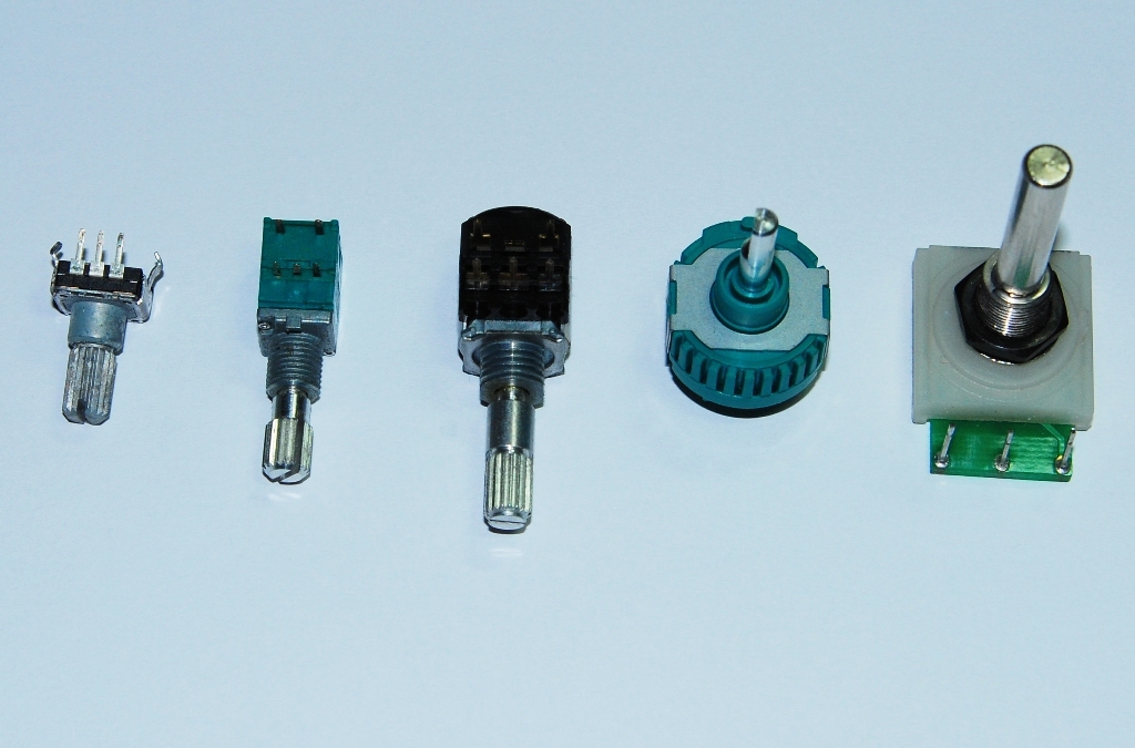 Do uruchomienia i pierwszych testów modułu syntezy możemy podłączyć enkoder mechaniczny. Jest spora ilość różnych modeli do wyboru, najczęściej od 24 do 64 imp/obr (pierwsze zdjęcie). Oprócz małej ilości impulsów oraz małej trwałości istotną wadą tego rozwiązania są drgania styków, które generują dodatkowe impulsy przestrajania syntezy. Czasem pomaga zablokowanie wejść kondensatorami.
