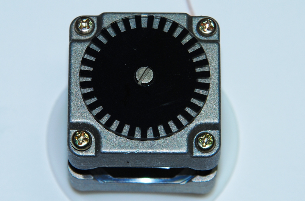 Wielkość tarczy wykonanej sitem dobrana do gabarytów silnika krokowego. Do tego samego silnika pasuje również profesjonalna tarcza o 360imp/obr.