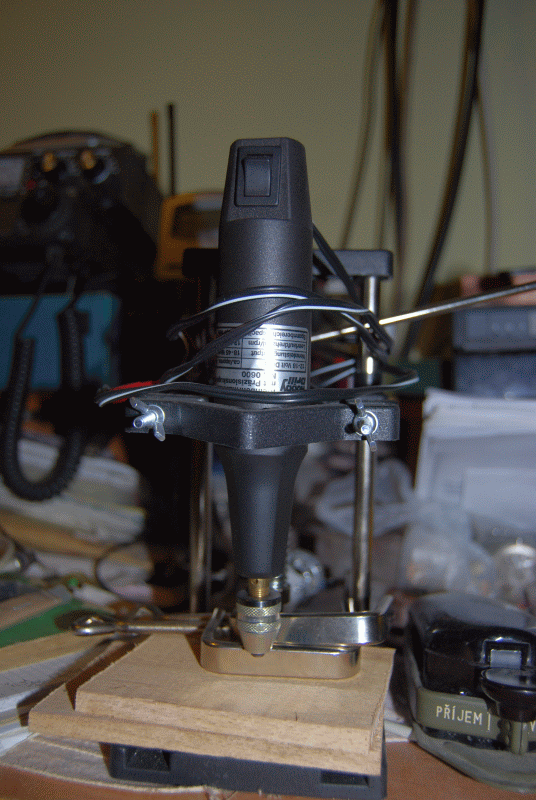 Siedzialem troche aby ustawic wartosci , aczkolwiek nie do konca sie to udalo;albo bylo brak obrotow w momencie docisku(obciazenia), albo krecila wolno - juz bez obciazenia ,a przy docisku do pcb dostawala full obrotow, albo szarpala nieskoordynowymi obrotami Smile) .Albo ja nie potrafilem uspokoic tego ukladu albo wiertarka jest nieodpowiedniaSad(( . Dlatego zaryzykowalem kupno statywu i sie wierci.