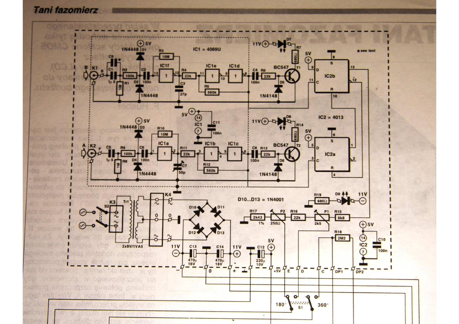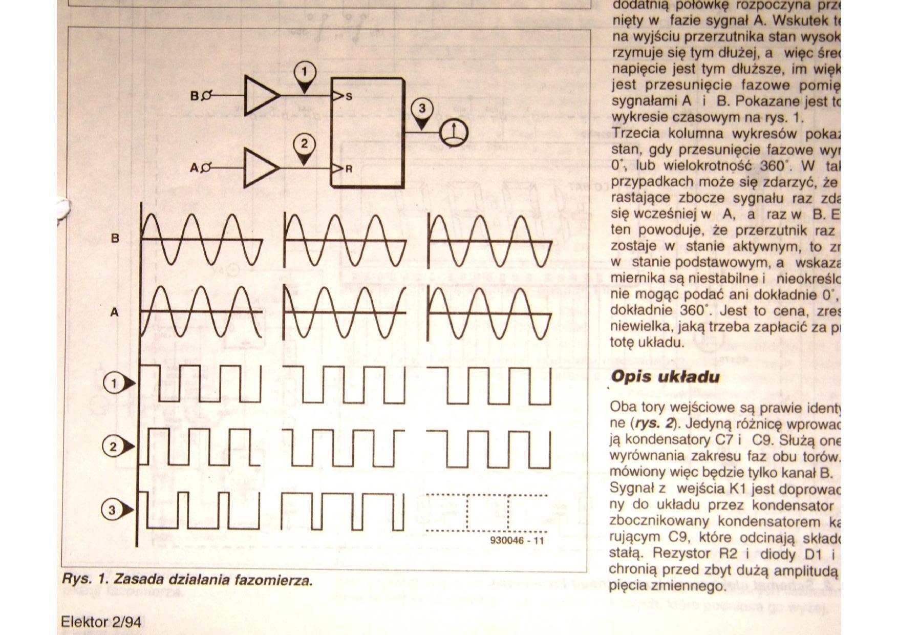 1. Z czym walczymy?. Chodzi o pomiar przesunięcia fazy dwóch sygnałów z dokładnością pozwalająca odróżnić kąt nie większy niż 1 stopień (dla takiego błędu przesunięcia otrzymuje się zadawalające tłumienie drugiej wstęgi) . Najtrudniejsze warunki pomiaru wystąpią dla górnej częstotliwości pracy filtra, którą założyłem na 2500Hz. Okres sygnału 2500Hz to 1/2500=400us. Oznacza to, że przesunięcie 1 stopnia dla tej częstotliwości to różnica w czasie rzędu 400/360=ok. 1.11us ! Dla częstotliwości 250Hz kątowi 1 stopnia odpowiada odcinek czasu ok. 11.1 us.