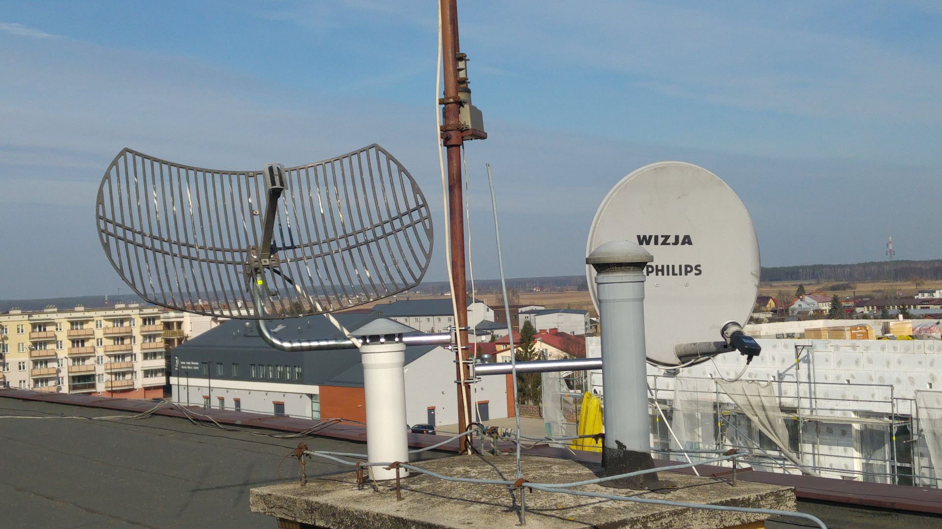 - podłączamy 12V do konwertera, sygnał wpuszczamy na SDR przez jakiś kondensator. Jak nie mamy kondensatora to można skręcić ze sobą dwa kawałki drutu - sygnał wychodzący z LNB jest bardzo, bardzo silny. Oczywiście to wersja ekstremalna, wypada zrobić "normalne" bias-t.