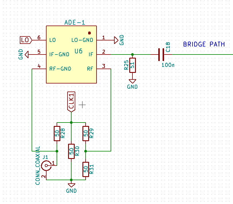Myślę, że masz jeszcze jeden istotny błąd w aplikacji ADE-1. Otóż włączenie wejścia mieszacza symetrycznie w przekątną mostka w istocie takim nie będzie ze względu na wewnętrzne połączenie mas uzwojeń (przynajmniej tak jest w moim egzemplarzu i nocie aplikacyjnej). Nie zaszkodzi też wstawić kondensatory oddzielające wyjścia generatora dla składowej stałej.
